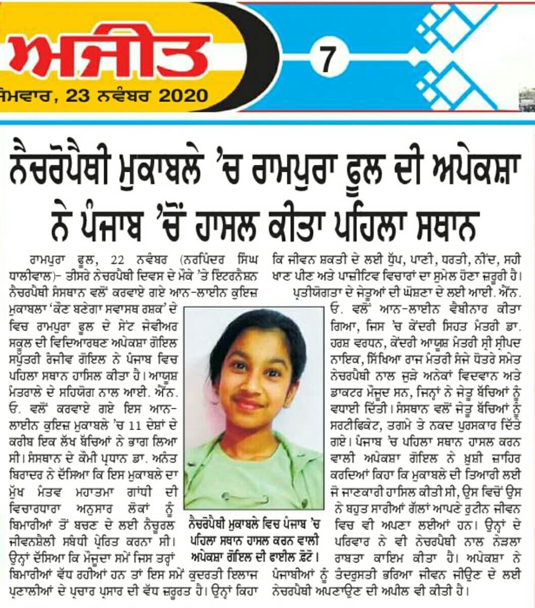 Haneet Kaur achieved this remarkable feat by outperforming hundreds of students from private schools across the state, ranging from Classes I to XII. As a winner, she was honoured with a trophy, a certificate, a memento, and a cash prize of ₹1100.
